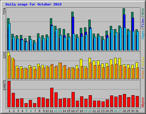 | Day | Hits | Files | Pages | Visits | Sites | KBytes | ||||||